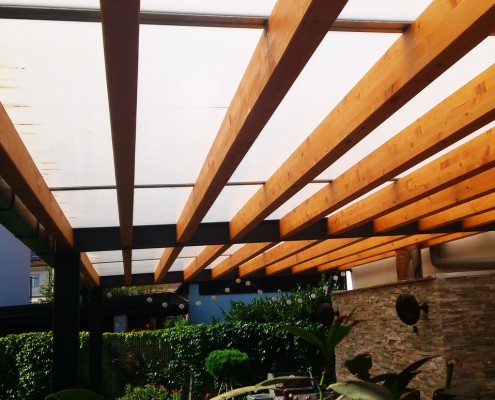Izdelujemo nadstreške ali pergole različnih oblik in velikosti, nadstreški se lahko držijo hiše ali pa tudi ne, odvisno je od namena nadstreška in čemu bo služil. Nadstreške ali pergole izdelujemo po želji in dimenzijah, ki so različne od posameznika. Tako je vsak nadstrešek unikaten in postane del hiše ali parcele. Nadstrešek pokrijemo z različnimi kritinami, glede na dogovor in željo stranke.